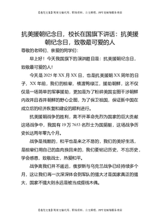 抗美援朝纪念日,校长在国旗下讲话:抗美援朝纪念日,致敬最可爱的人.doc