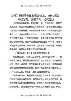 202X寒假前全体教师会议上,校长讲话:修己为范,启智于新,协同致远.docx