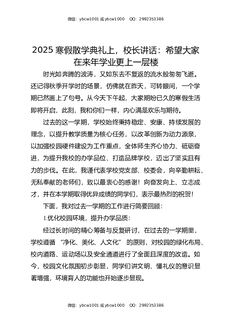 202X寒假散学典礼上,校长讲话:希望大家在来年学业更上一层楼.docx