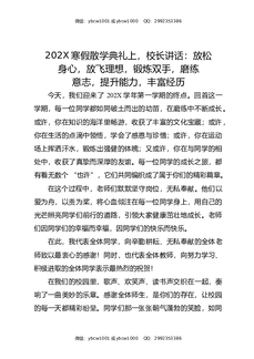 202X寒假散学典礼上,校长讲话:放松身心,放飞理想,锻炼双手,磨练意志,提升能力,丰富经历.docx