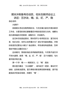 期末冲刺备考总动员,校长在教师会议上讲话:五字诀,精,实,盯,严,稳.doc