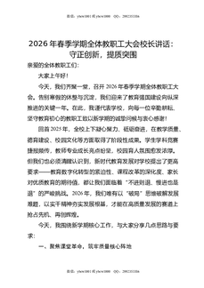 2026年春季学期全体教职工大会校长讲话:守正创新,提质突围.doc
