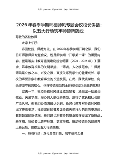 2026年春季学期师德师风专题会议校长讲话:以五大行动筑牢师德新防线.doc