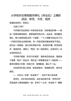 小学校长在寒假散学典礼(休业式)上讲话:昨天,今天,明天.doc