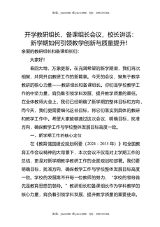 开学教研组长,备课组长会议,校长讲话:新学期如何引领教学创新与质量提升!.doc