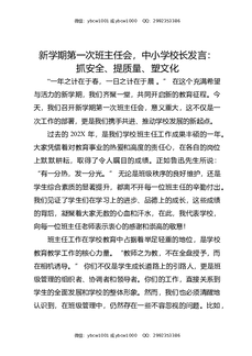 新学期第一次班主任会,中小学校长发言:抓安全,提质量,塑文化.docx