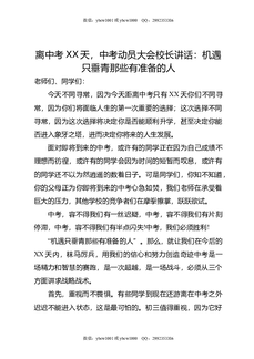 离中考XX天,中考动员大会校长讲话:机遇只垂青那些有准备的人.doc