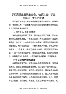 学校高质量发展推进会,校长发言:学生是学习,生长的主体.docx