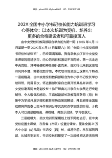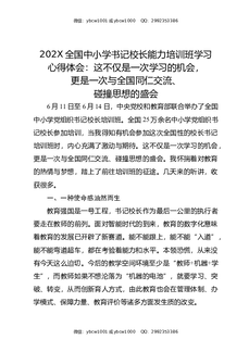 202X全国中小学书记校长能力培训班学习心得体会:这不仅是一次学习的机会,更是一次与全国同仁交流,碰撞思想的盛会.docx