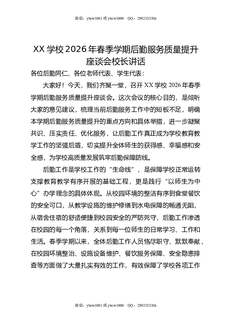 XX学校2026年春季学期后勤服务质量提升座谈会校长讲话.doc