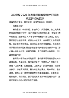 XX学校2026年春季学期教学开放日活动欢迎辞校长致辞.doc