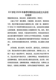 XX学校2026年春季学期校友会成立大会校长致辞.doc