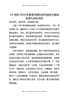 XX学校2026年春季学期科技节创新大赛颁奖典礼校长讲话.doc