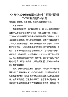 XX高中2026年春季学期学生生涯规划导师工作推进会副校长发言.doc