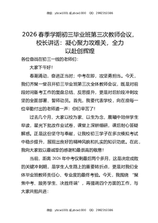 2026春季学期初三毕业班第三次教师会议,校长讲话:凝心聚力攻难关,全力以赴创辉煌.docx