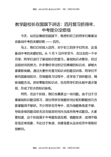 教学副校长在国旗下讲话:四月复习抓得牢,中考提分没烦恼.docx