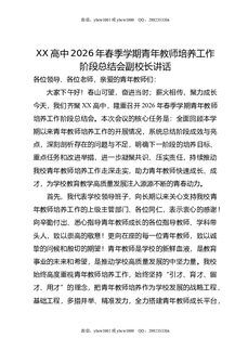 XX高中2026年春季学期青年教师培养工作阶段总结会副校长讲话.doc