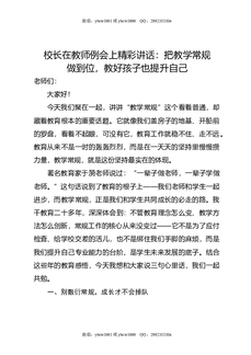 校长在教师例会上精彩讲话:把教学常规做到位,教好孩子也提升自己.docx