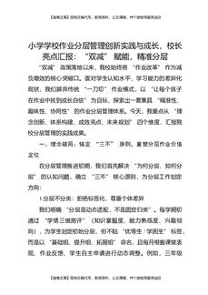 小学学校作业分层管理创新实践与成长,校长亮点汇报:“双减”赋能,精准分层.docx