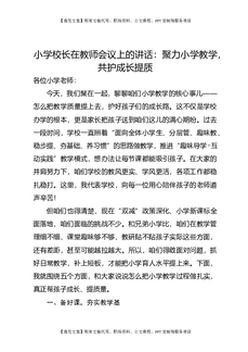 小学校长在教师会议上的讲话:聚力小学教学,共护成长提质.docx