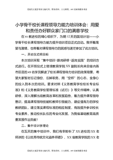 小学骨干校长课程领导力能力培训体会:用爱和责任办好群众家门口的满意学校.docx