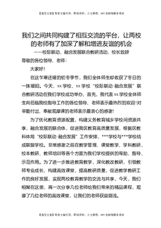 校际联动,融合发展联合教研活动,校长致辞:我们之间共同构建了相互交流的平台,让两校的老师有了加深了解和增进友谊的机会.docx
