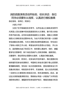 消防疏散演练活动开始前,校长讲话:各位同学必须要听从指挥,认真进行模拟撤离.docx