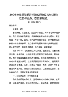 2026年春季学期开学初教师会议校长讲话:以自律立身,以自愈赋能,以自足养心.doc
