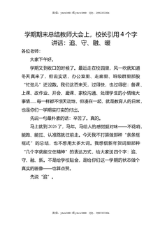 期末总结教师大会上,校长引用4个字讲话:追,守,融,暖.doc