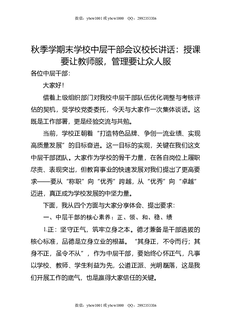 秋季学期末学校中层干部会议校长讲话:授课要让教师服,管理要让众人服.doc