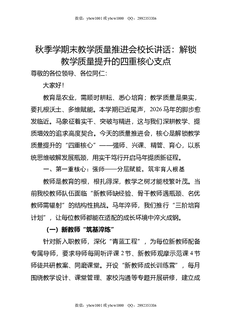 秋季学期末教学质量推进会校长讲话:解锁教学质量提升的四重核心支点.doc