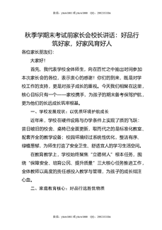 秋季学期末考试前家长会校长讲话:好品行筑好家,好家风育好人.doc
