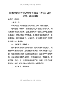 秋季学期末考试动员校长国旗下讲话:诚信应考,超越自我.doc