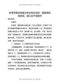 秋季学期末质量分析会校长讲话:直面差距找症结,凝心实干促提升.doc