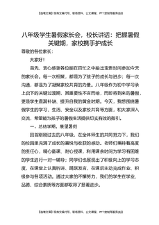 八年级学生暑假家长会,校长讲话:把握暑假关键期,家校携手护成长.docx