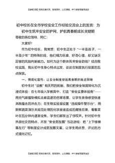 初中校长在全市学校安全工作经验交流会上的发言:为初中生筑牢安全防护网,护航青春期成长关键期.docx