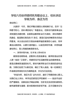 学校六月份师德师风专题会议上,校长讲话:学高为师,身正为范.docx