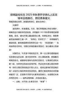 德育副校长在2025年秋季开学典礼上发言:铸牢品格基石,燃旺青春星火.docx