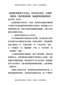 教育教学管理工作会议,初中校长讲话:以管理提质效,靠改革谋新篇,构建教育发展新格局.docx