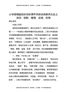 小学德育副校长在秋季开学初全体教师大会上讲话:明职、暖情、实做、优育.docx