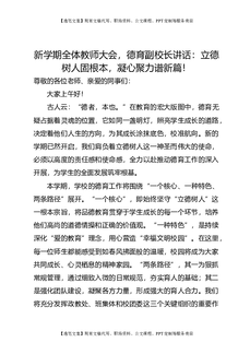 新学期全体教师大会,德育副校长讲话:立德树人固根本,凝心聚力谱新篇!.docx