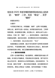 校长在2025 年新学期师德师风培训会上的讲话:“教师” 二字,无关 “职业”,关乎 “模样”