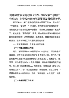 高中分管安全副校长2024-2025第二学期工作总结:为学校教育教学高质量发展保驾护航.docx