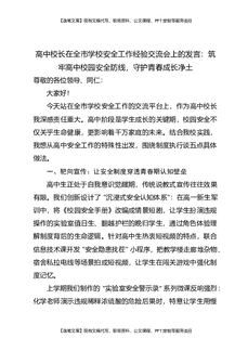 高中校长在全市学校安全工作经验交流会上的发言:筑牢高中校园安全防线,守护青春成长净土.docx