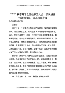 2025秋季开学全体教职工大会,校长讲话:强师德师风,促高质量发展!.docx