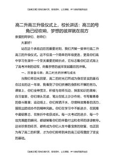 高二升高三升级仪式上,校长讲话:高三的号角已经吹响,梦想的彼岸就在前方.docx