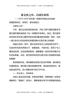 2025-2026学年第一学期开学典礼校长致辞:乘金秋之风,启成长新程.docx