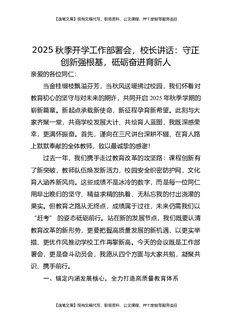 2025秋季开学工作部署会,校长讲话:守正创新强根基,砥砺奋进育新人.docx