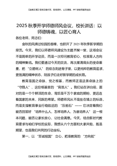 2025秋季开学师德师风会议,校长讲话:以师德铸魂,以匠心育人.docx