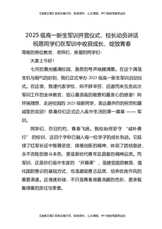 2025级高一新生军训开营仪式,校长动员讲话:祝愿同学们在军训中收获成长、绽放青春.docx